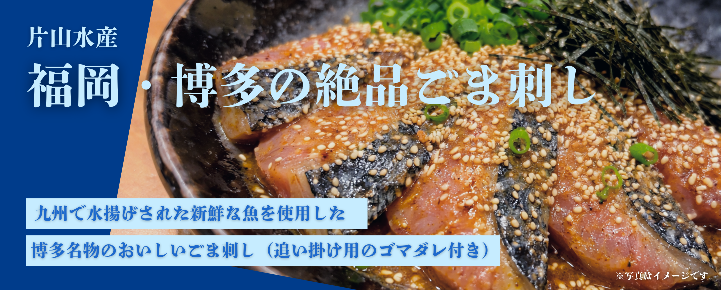 福岡・博多の名物ごま刺しを小分けにした博多の水産業者、片山水産オリジナルのセットです。 解凍するだけでさば刺し、鯛刺し、サーモン刺しの3種類をお手軽にお楽しみいただけます。 ご飯のおかずやお酒のおつまみに。また、丼ぶりやお茶漬けとしても美味しくお召し上がりいただけます。 追い掛け用のゴマダレと刻みのり、ワサビもお付けしました。