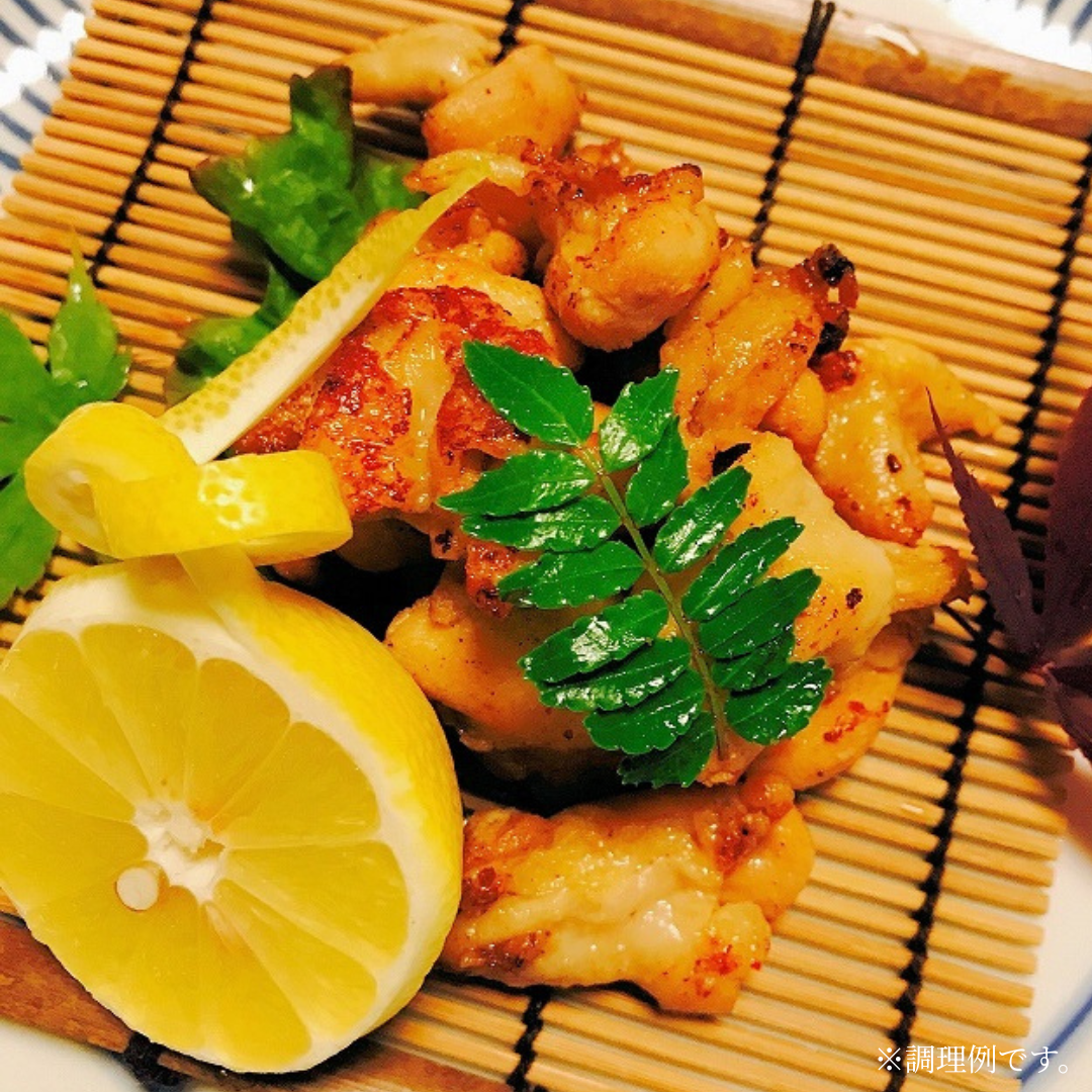 旨味あふれるプリプリ食感の鶏肉と、瀬戸内産の新鮮なレモンが特徴の、もう一つの名物です。1羽から30~50gしか取れない希少な部位、手羽元と胸肉の間の肩肉を使用しており、高たんぱく低コレステロールの品になっております。