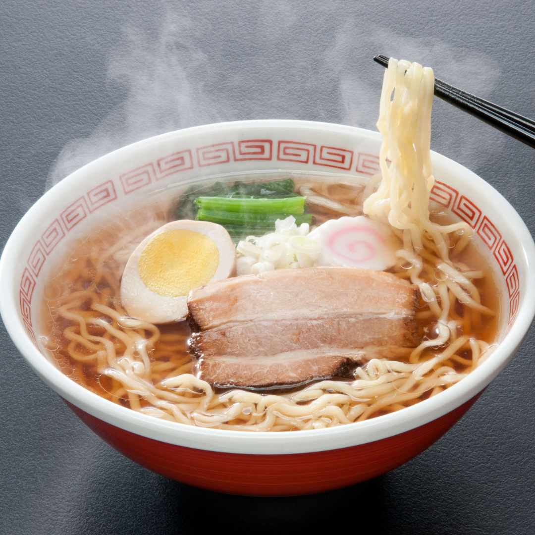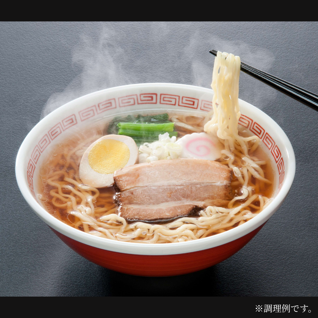 2種類の小麦粉を独自の配合で練り込み熟成させた麺はモチモチとした食感とつるっとした喉ごしが特徴。あっさりとした醤油スープと相性抜群です。やわらかい自家製チャーシューと風味豊かなフリーズドライネギが付いた本格的な喜多方ラーメンをお召し上がりいただけます。