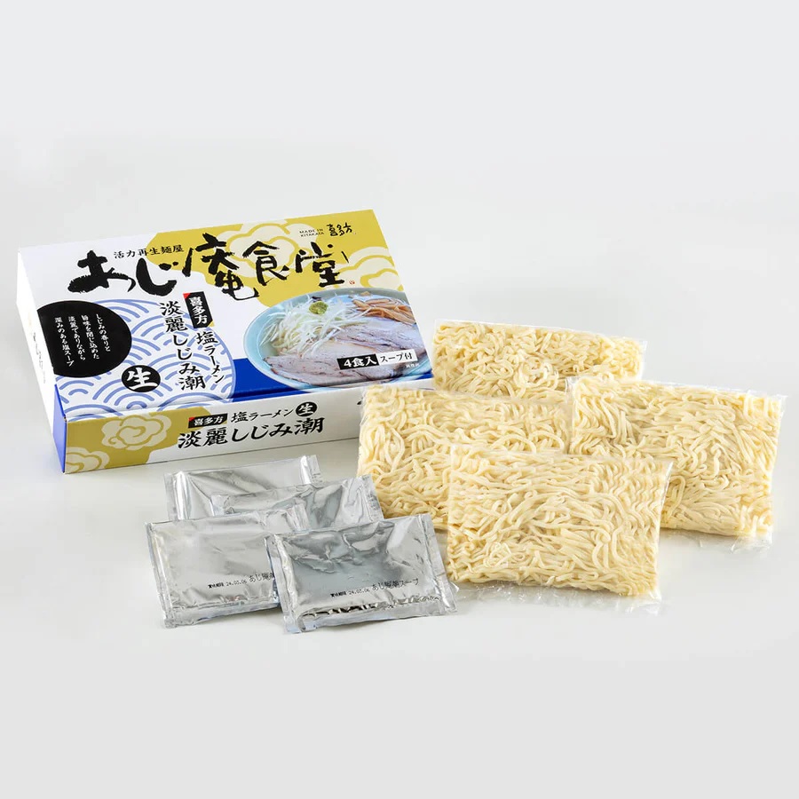 スープ:食塩(フランス製造)、豚脂、しょうゆ、ポークエキス、昆布エキス、いわし煮干しエキス、香辛料、酵母エキス、しじみエキス/調味料(アミノ酸等)、酒精、加工でんぷん、カラメル色素、(一部に小麦・大豆・豚肉を含む)