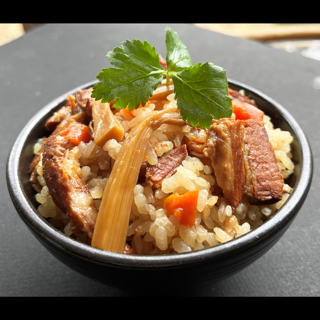 炊き込みご飯の素:つゆ(水あめ、醤油、砂糖、食塩、その他)(国内製造)、チャーシュー、メンマ、人参 /調味料(アミノ酸等)、カラメル色素、(一部に豚肉・大豆・小麦を含む)