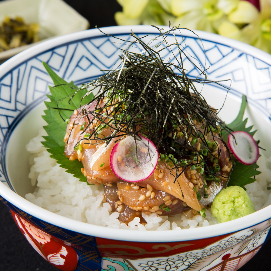 九州で水揚げされた新鮮な真鯛を使い秘伝のゴマダレに漬け込みました。